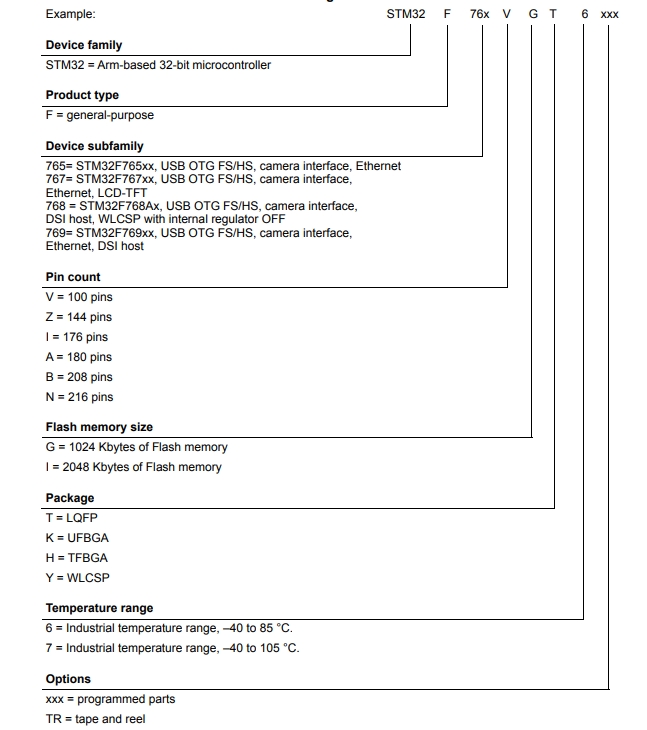 STM32F767VGT6 material number explanation diagram